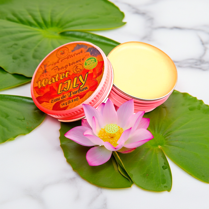 The Water Lily solid perfume offers a divine fragrance while utilizing ingredients sourced from nature. It is highly concentrated (Eau de Parfum), ensuring a long-lasting scent—a little goes a long way.